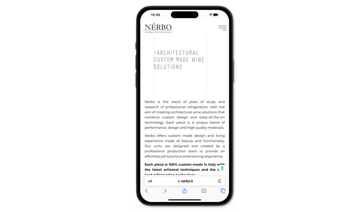 Nerbo è un brand che progetta e realizza celle per vino su misura, caratterizzate da un design unico e pensate per i più raffinati collezionisti e intenditori di vino in tutto il mondo. Il nostro obiettivo era creare un sito web che riflettesse il lusso e l’eccellenza dei suoi progetti, rendendolo accessibile a un pubblico internazionale e incentrato sulla qualità e la funzionalità.